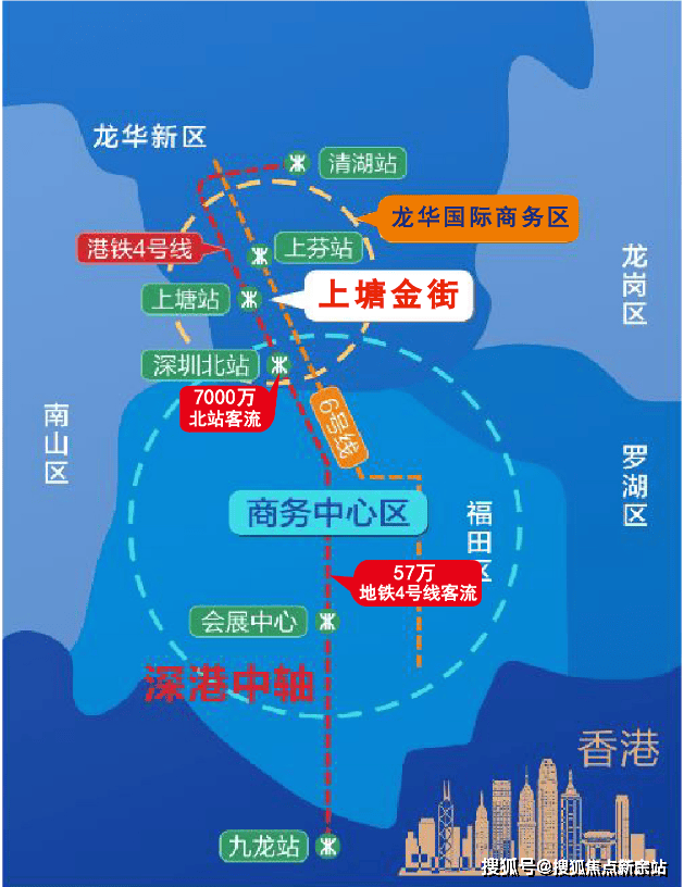 龙华地处深圳地理几何中心和城市发展中轴,坐拥深圳北站这一粤港澳大湾区特大型综合交通枢纽,北站商务区,位于深圳中轴,总建筑面积17.34平方公里,国际客流投资中心“中轴之城”,是龙华区天然的地缘优势,更是新时代赋予这片城区的新责任与新使命;