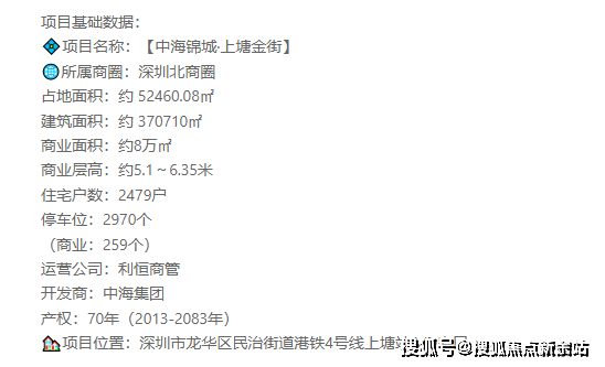 中海锦城·上塘金街由央企中海2013年38.2亿拿下龙华地王建设打造,占地52460平方,商业约占8万平方,经过沉淀发展,上塘片区标杆及拥有众多开发商加持,标杆物业包括中海、金茂、恒裕、莱蒙、特发、港铁、龙光、华侨城等打造新的龙华中央活力区,片区更有全国交通枢纽,深圳北站,迎接全国日客流量12万人,打造广深港半小时生活圈!