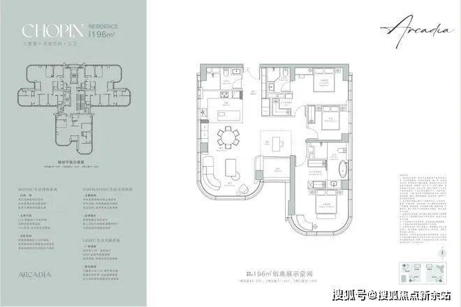 建面约196㎡户型是三居室+灵动空间+三卫的奢阔设计,让生活更加从容且惬意,匹配对生活有追求的商务精英或高净值人群的居住需求。