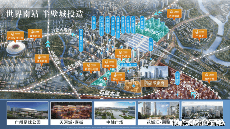 效果示意图在这里,你会有更丰富的生活体验,项目与广州新地标——广州足球公园为邻,绿意盎然,活力四射;同时,广州南站商圈、全国5A旅游景区——长隆商圈以及广州南中轴CBD——万博商圈三大商圈环绕,让您的生活既享自然之静谧,又不失都市之繁华。