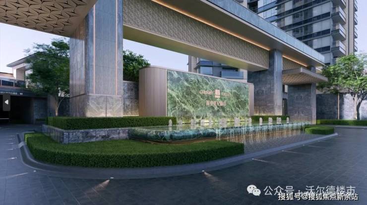 ②门仪:约70m宽奢阔主入口,绿奢石照壁、天然花岗岩门头