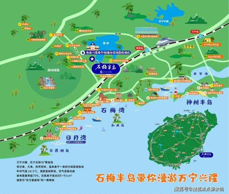 5⃣【资源】丰富游玩资源,醇熟湖岛度假王国石梅半岛坐拥海南东海岸石梅湾、日月湾、神州半岛三大旅游度假区,外享高端旅游资源配套,包括星级酒店、高尔夫球场、国家森林绿道、兴隆热带花园、王府井免税港等,自然与人文交融,满足你对海南定居的所有想象。