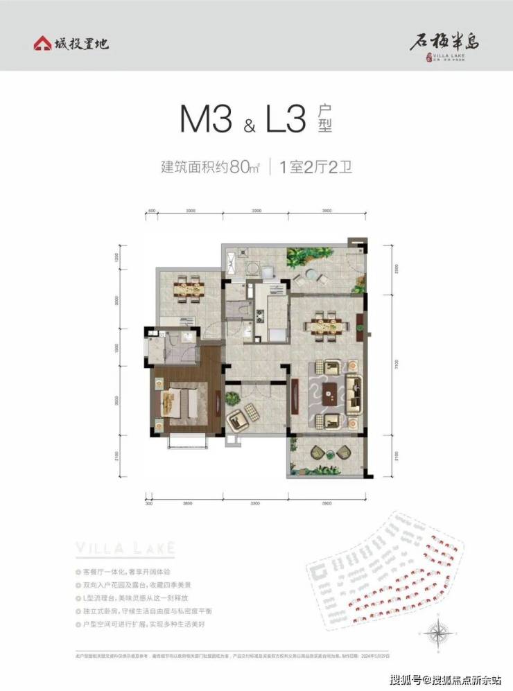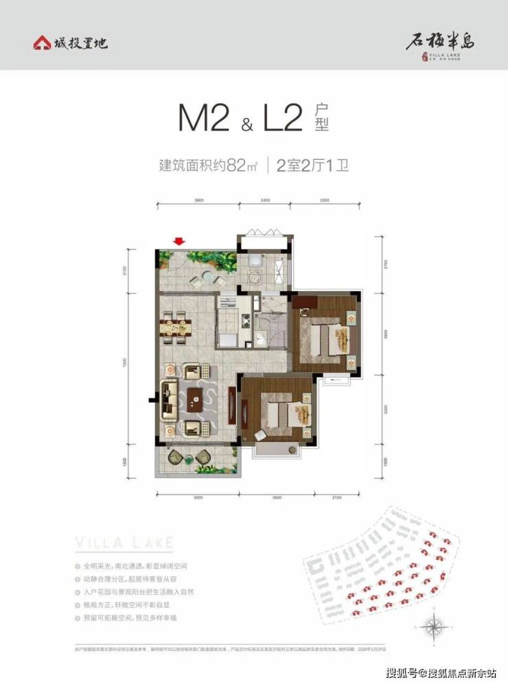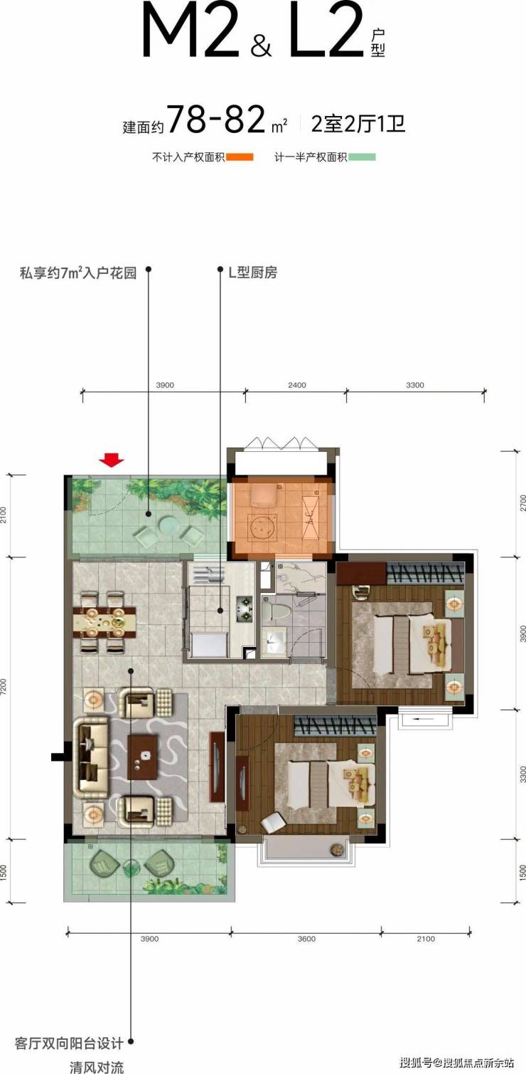 精奢两居,空间宽敞通透M2&L2户型 建面约78-82㎡2室2厅2卫