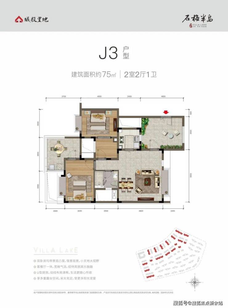 高拓中叠,买两房得三房J3户型 建面约75㎡ 2室2厅1卫