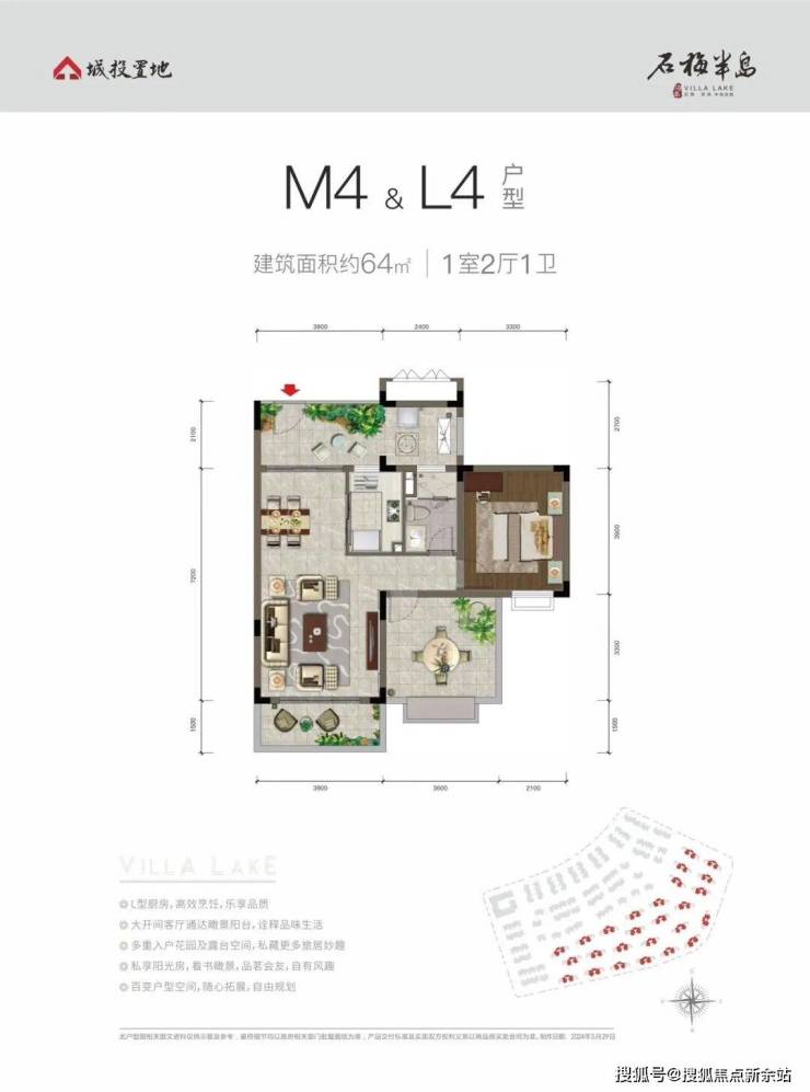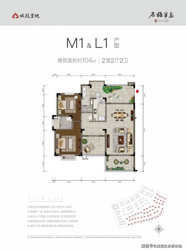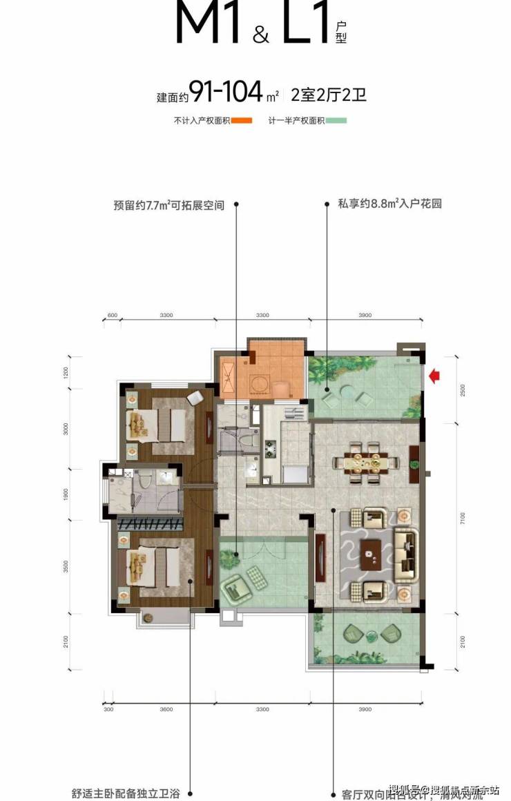 阔绰两居,生活从容有度M1&L1户型 建面约91-104㎡ 2+1室2厅2卫