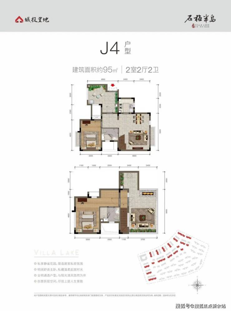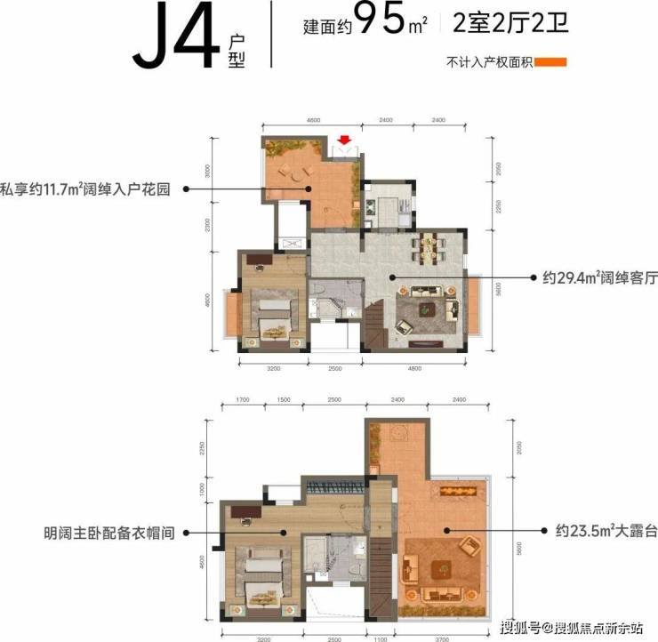 跃层上叠,合理分区J4户型 建面约95㎡ 2室2厅2卫