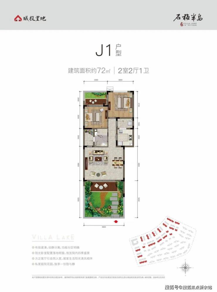 独院下叠,小面积大享受J1户型 建面约72㎡ 2室2厅1卫
