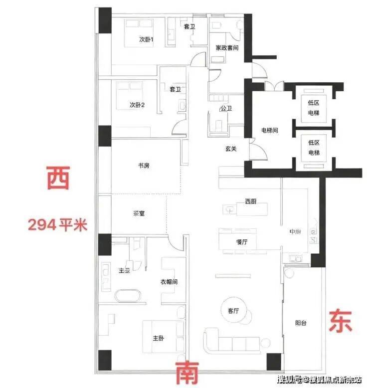 295㎡户型是整个中低区里面户型实用性最强,不仅能够做到4+1房的功能,还有单独的家政套间,设计了主仆双动线,相互的隐私都更好。