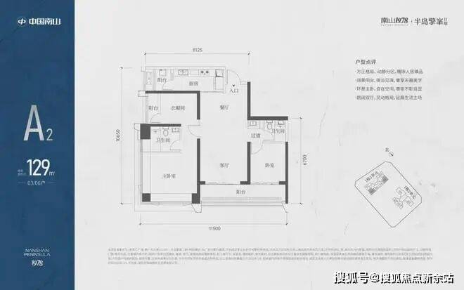A2有两条腿,分别1-1栋03/06,主朝向是东南向,双龙抱珠格局。这个户型是超阔大阳台,朝向优于A1,但公卫是个暗卫。