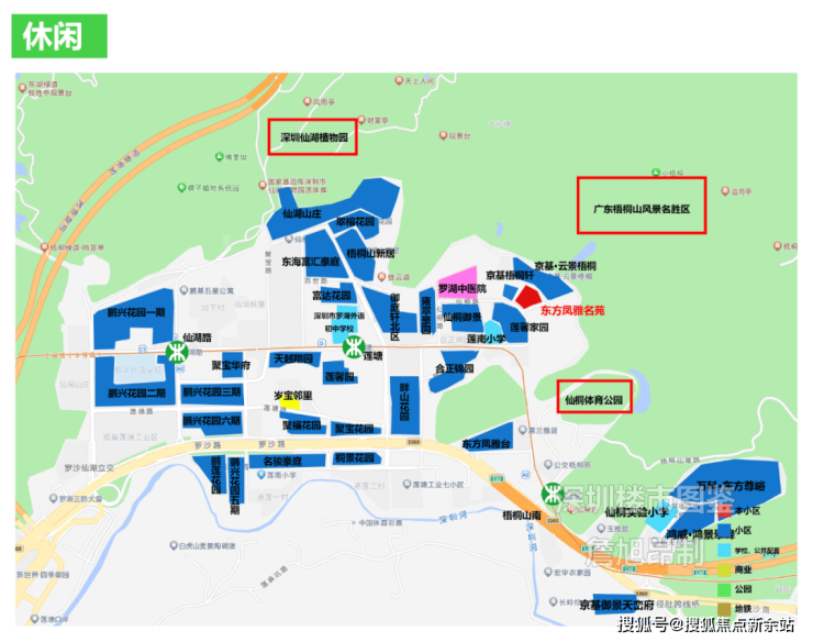 项目休闲娱乐配套非常丰富,项目距离2.8公里有仙桐体育公园,除此之外周边还有广东梧桐山风景名胜区,深圳仙湖植物园休闲场所。