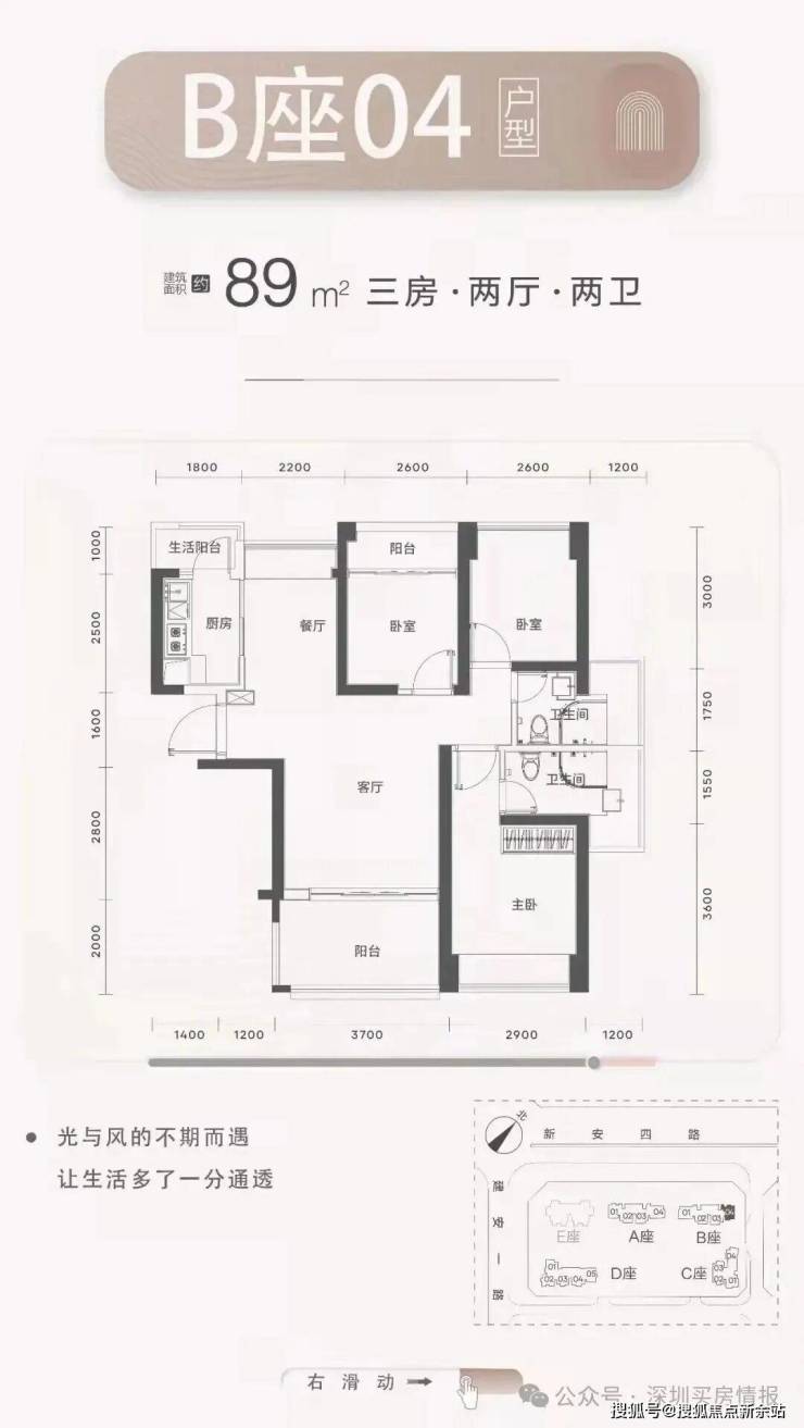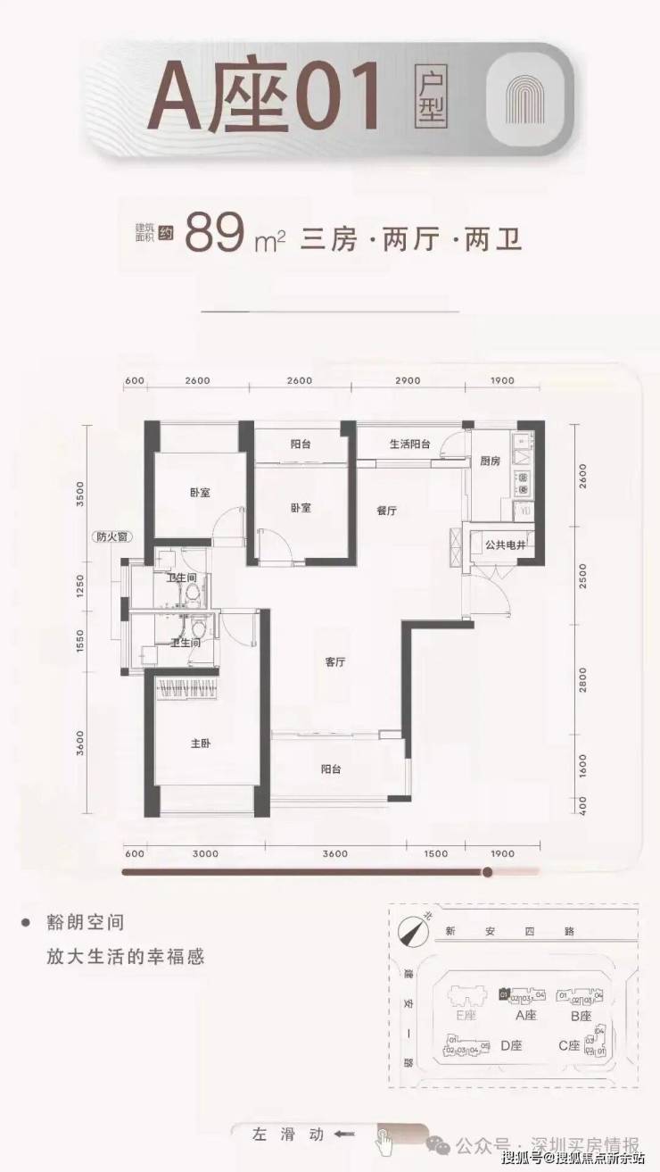 梯户比:A-C座2梯4户,D座2梯5户