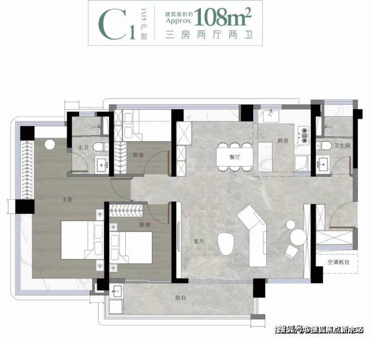 108㎡户型得房率超94%,比同类120㎡户型更为实用。