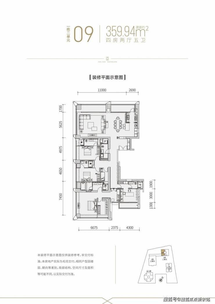 【建面约360平4房全套房2厅5卫】