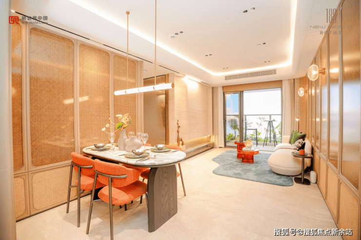 它用一个约7米的奢阔横厅,结合LDKB(客餐厨阳台)一体化设计,打破了传统空间的壁垒,让这里不再是孤立的功能区,而是一个流动的、充满互动的“家庭社交场”。