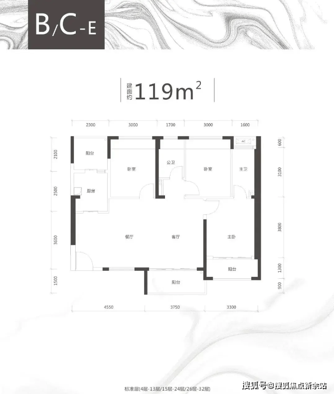 【在售面积段】:A栋154-253㎡ ;BC栋100-119㎡