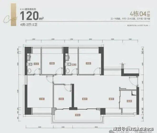 4栋、5栋:4梯5户,层高3.1米,01-02户型116平3房2卫,03、05户型142平4房2卫,04户型120平3房2卫;