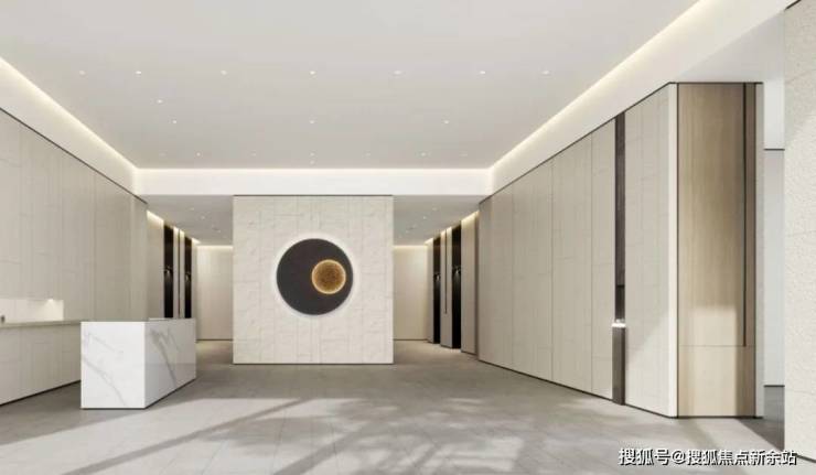 入户大堂内使用哑光面、温润面及雕刻面的天然大理石交互铺贴,功能涵盖茶室、书吧等;