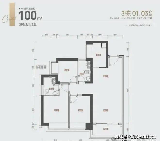 3栋:4梯6户,层高3.1米,01-04户型100平3房2卫,05-06户型120平4房2卫