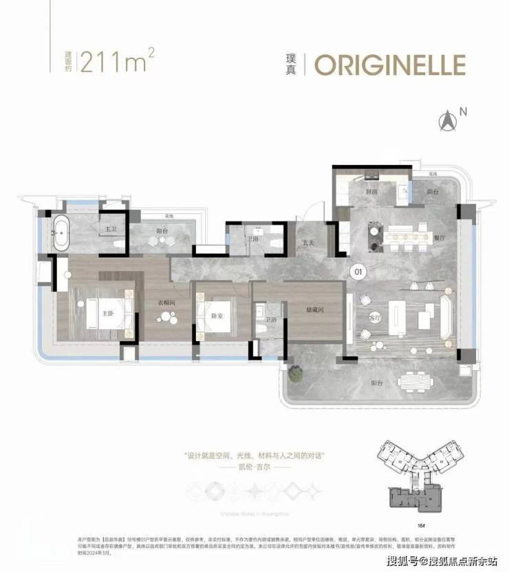 230平户型拥有私家电梯厅、双主套、独立佣人房、南北对流、LDKB大方厅、主卧L型270°飘窗等,大大提升了整体的空间体验。