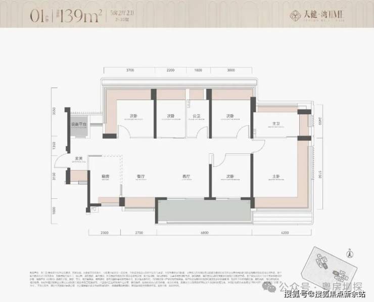 【产品面积段】约113-115㎡的四房、139㎡的五房
