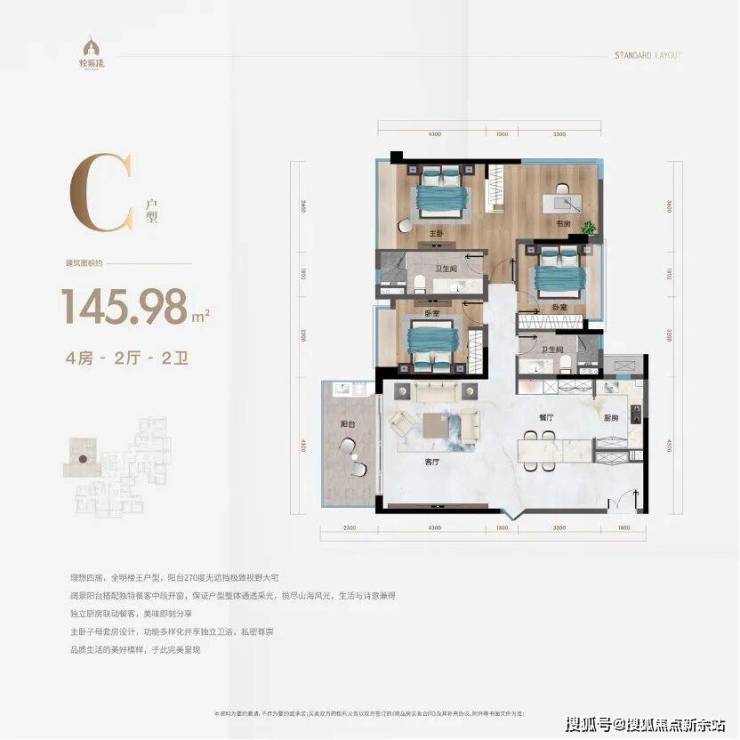-116-146㎡三至四房:4.5米阔绰客厅,餐客独立分明,空间实用主义与仪式感并存。