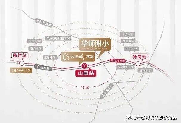 距21号线山田站D出口直线距离约50米,快线6站天河,3站黄埔。大华城东瀚售楼处电话: 400-832-5521