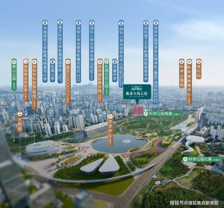 关于光明这个大公园,我认为是深圳未来做为粤港澳湾区引擎的核心建筑标志,多年后回头望,说一定还是一个时代的精神印记,下面介绍下,『振业天境云庭』一路之隔的科学公园。