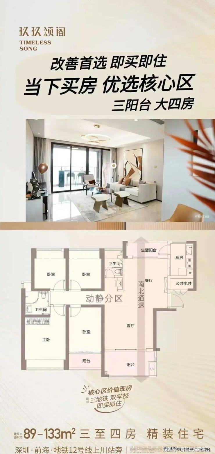 玖玖颂阁项目位于深圳宝安区,占位前海黄金圈内环,享受宝中醇熟配套。项目在售建面89-133㎡三至四房,全南向板楼设计,通风采光佳;建面89㎡三房两厅两卫,人生第一套房不必迁就;建面128-133㎡四房两厅两卫,阔绰奢宅,三代同堂的进阶之选。