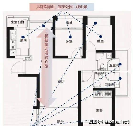 阳台阔绰:前海稀缺在售89㎡三房两卫三阳台,客厅阳台进深1.9米,揽收城园双景