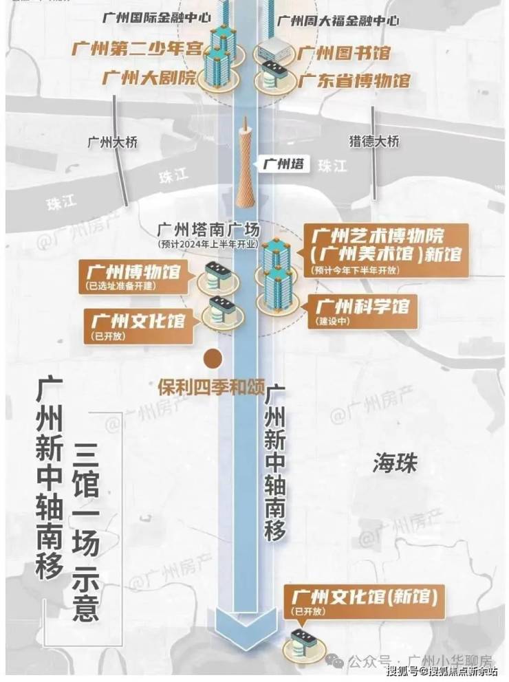 对标天河CBD,新“四馆一场”坐落海珠,广州科学馆,广州美术馆、广州文化馆,广州博物馆新馆、广州塔南广场,其中广州塔南广场会被打造成海珠区最高端的商业综合体,聚集发展美食旅游、时尚娱乐、国际展贸等消费新业态。