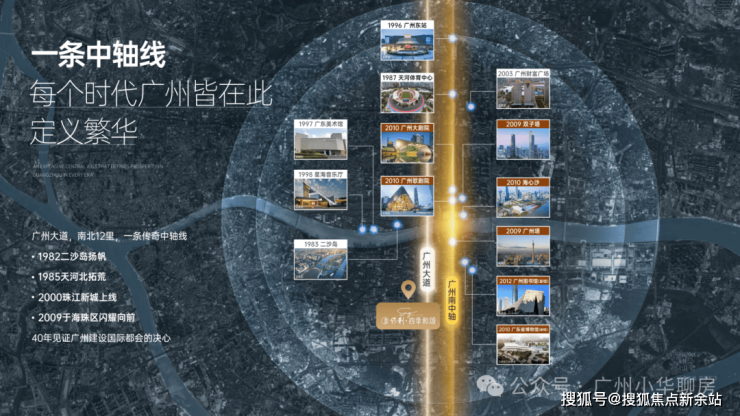 广州新中轴是广州发展的“大动脉”,天河北-珠江新城CBD中轴两端土地已发展饱和,顺应“南拓”发展趋势,未来的发展重心将落到海珠。项目占据城市最核心的位置,左拥海珠成熟老城,右抱琶洲数字经济区,顶尖的资源及产业都沿着这条中轴铺开。