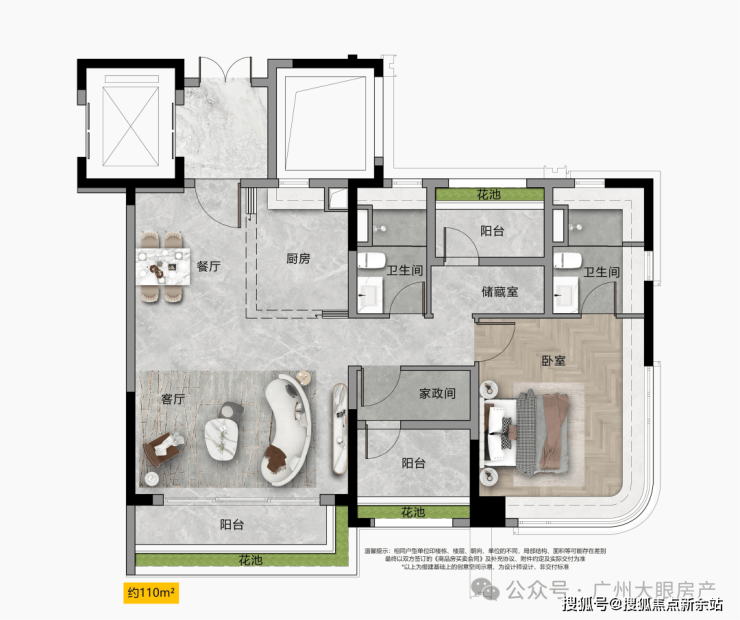 “宽幕视野” 南北通透双视野,主卧270°转角飘窗