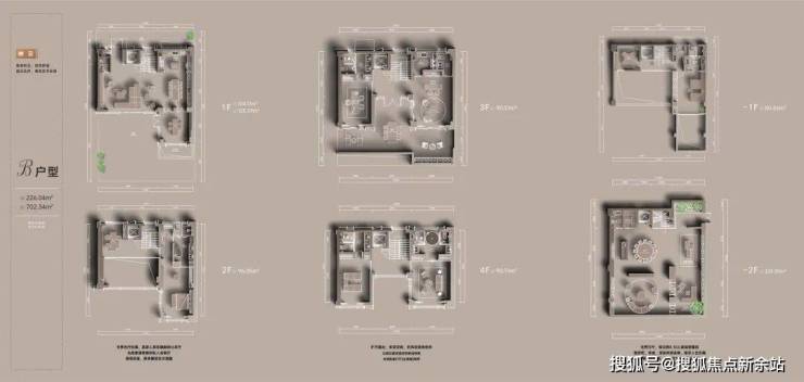 ☁映云【B 户型】建面 227㎡ ,实际使用面积 703㎡