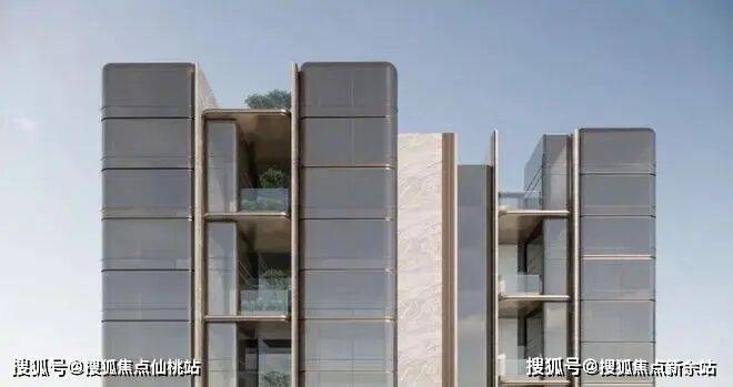 立面系统采用公建化手法,以大面积超白玻全景落地窗为主体,搭配高品质的定制铝板与流线型金属饰条。铝板表面的纹理灵感源自“海贝波纹”,在阳光下与玻璃共同折射出如钻石切割面般的立体光影效果,极具现代感与标志性。
