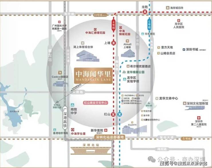 宇宙中心,红山正心,繁华鼎配。1/2福田、南山价,享深圳CBD市级配套。建面约84-116㎡精装3-4房周边配套