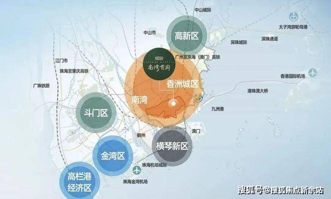 ▫️南湾位居珠海地理几何中心,东面一桥之隔即为香洲老城区,南面与横琴粤澳深度合作区、十字门中央商务区一山之隔;西面规划鹤州新中心;