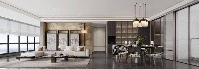 在大师团队的妙笔下,整个项目规划建设7栋塔楼、8栋板楼、15栋叠墅,高层围绕南面的黑白面将军山和南屏水库形成为围合之势,将面宽1000米的湖景和5000米的山景资源最大化,实现建筑与外部环境的融合协调。