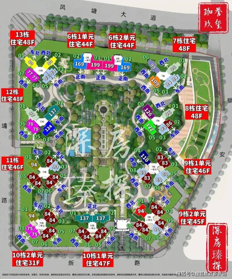 鸿荣源珈誉玖玺,由鸿荣源集团打造,总占地面积约4.79万㎡,总建筑面积约40.53万㎡,计容建筑面积约27.63万㎡,容积率5.42,绿化率40%,共由10栋总高31-48F住宅组成,其中6栋1/2单元住宅44F,7栋/8栋住宅48F,9栋1单元住宅46F,9栋2单元住宅45F,10栋1单元住宅47F,10栋2单元住宅31F,11栋住宅46F,12栋/13栋住宅48F。