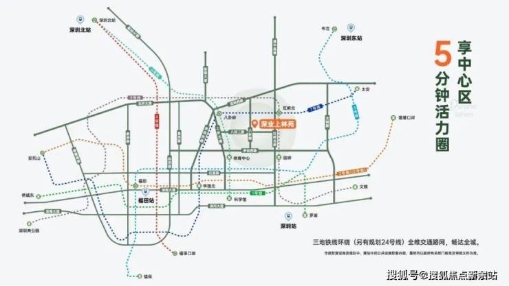 深业上林苑项目尽享福田成熟生活、交通配套,周边地铁环伺(6/7/9号线+规划24号线)的立体路网,畅达全城。口岸加高铁站、以及多条城市主干道的配置,多方式通达全城与香港,构筑起"湾区半小时生活圈"的通行效率,既满足商务精英跨境通勤需求,又为资产注入深港融合的长期价值动能。