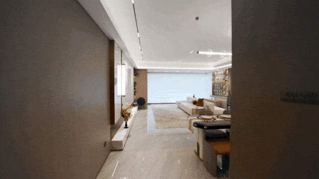 来感受一下,客厅与其中一个次卧打通后的空间感~