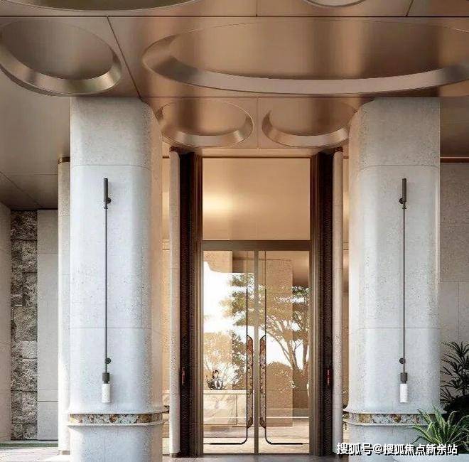 ·每栋的独立入户大堂,采用无菱角高端石材,风格与大门相呼应,效果图看起来挺高端奢华的。