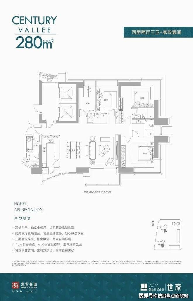 【世家大宅·户型鉴赏】约233㎡ 三房两厅两卫+家政套间