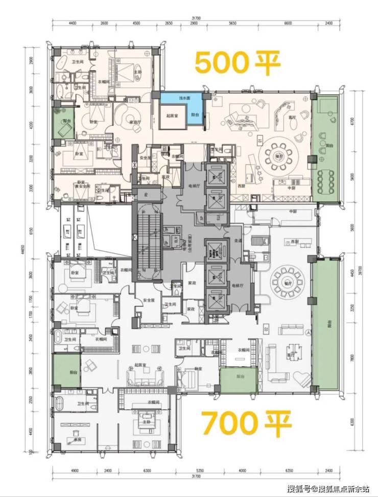 顶楼:约1050㎡整层大平层(仅3套)。