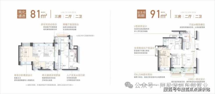 ①精聚焦青年家庭需求,联发精研定制建面约81/91㎡超能三房两卫成长空间,综合使用率高;
