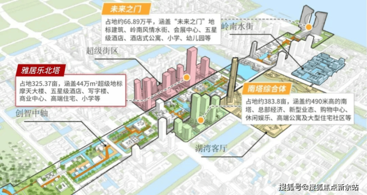 项目涵盖有36班制小学即为雅居乐小学、20万㎡国际商业广场、10万㎡大型主题乐园、体育公园、44万㎡北塔地标建筑、双五星级酒店、甲级写字楼、全面积产品线高端住宅等配套,居住功能丰富。