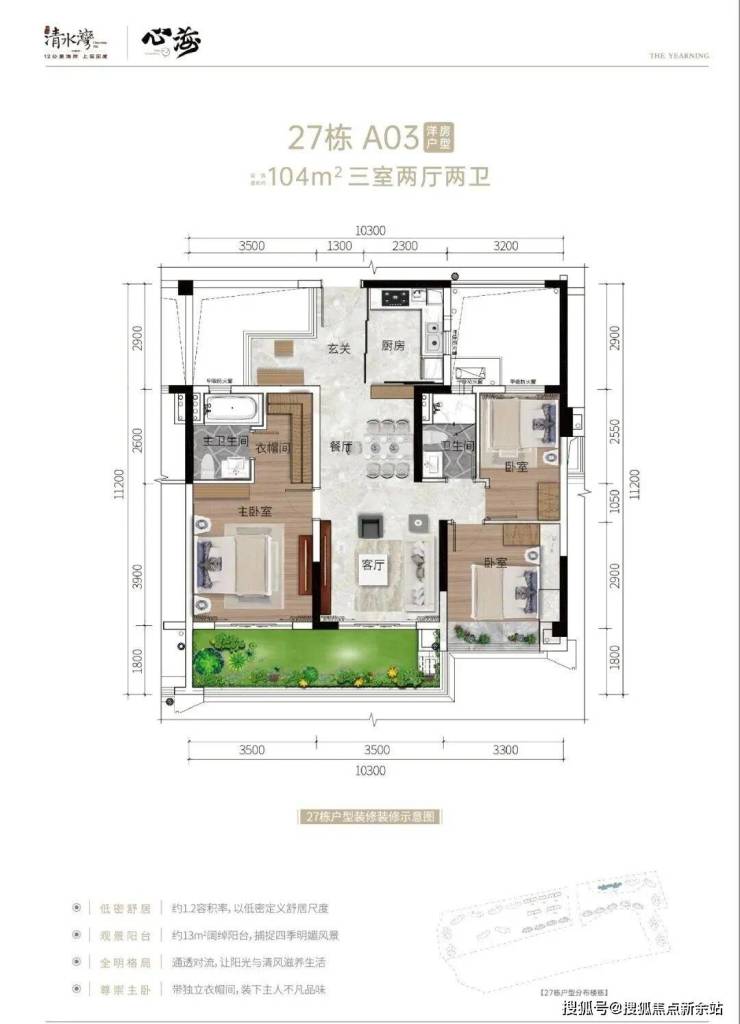 15、16号楼103㎡户型,三房两厅两卫27#02、03号位104㎡户型,三房两厅两卫