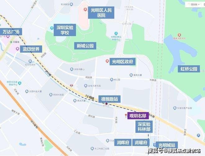 除了新爆出的高使用率外,这个盘最大的卖点同样是地段。斜对面就是光明区政府、深房光明里,家门口有13号线德雅路站,附近是光明城高铁站。