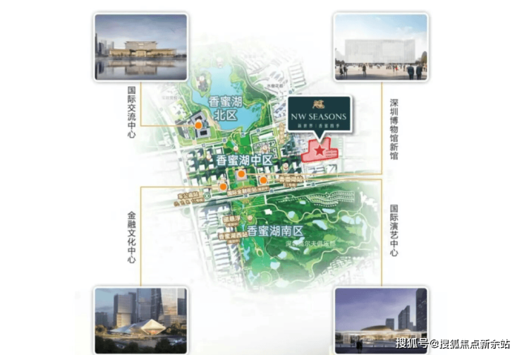 项目位于福田中心区景田片区,紧邻香蜜湖金融中心,周边汇聚了福田顶级的配套,西南是国际演艺中心和高尔夫俱乐部,西北处是香蜜湖,东面则是市民中心、深交所。