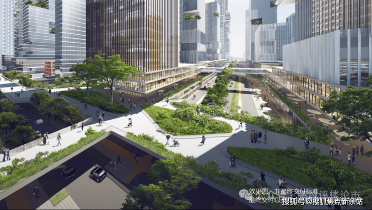3、立体交通——未来片区多层次、多维度的立体绿色出行体系。双地铁上盖,市政规划的空中连廊系统,“0”距离接驳全城。