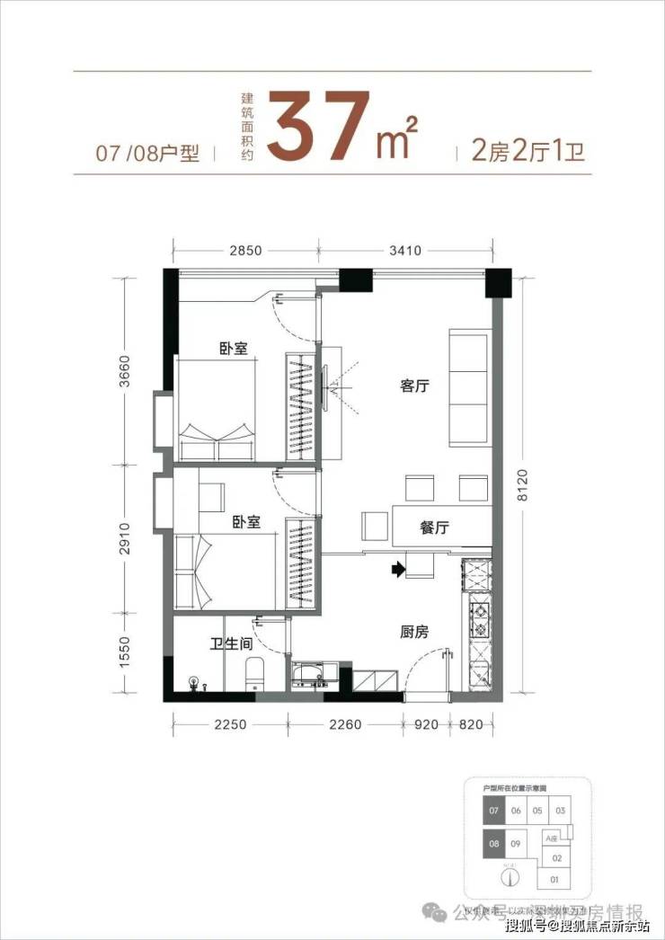 【产品面积】约37㎡小两房(实际套内使用面积接近54㎡)